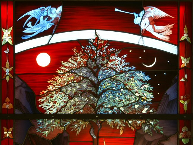 At the time I was making this window, I wasn't making videos, so this is an enhanced slideshow explaining both the symbolism and the techniques involved to create this highly complex work using only traditional stained glass methods.