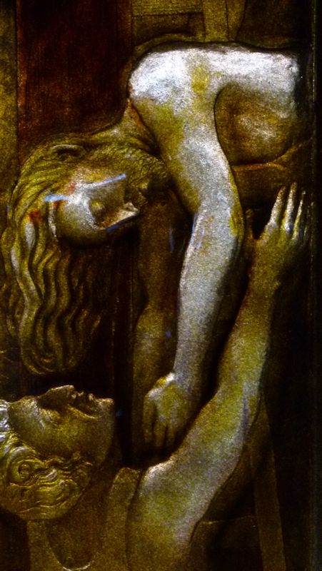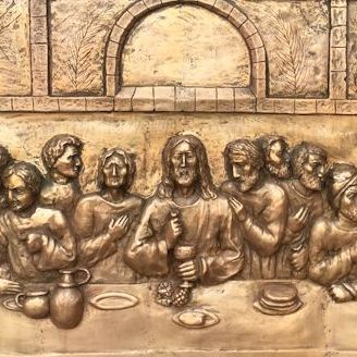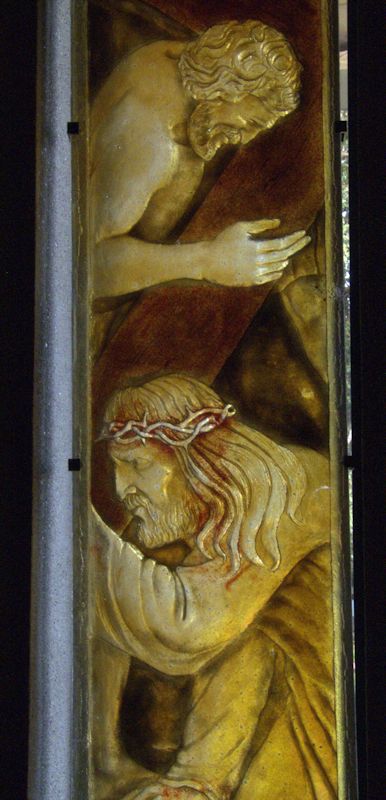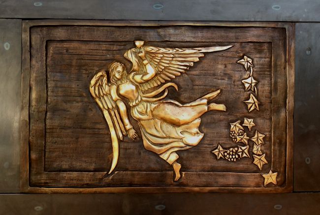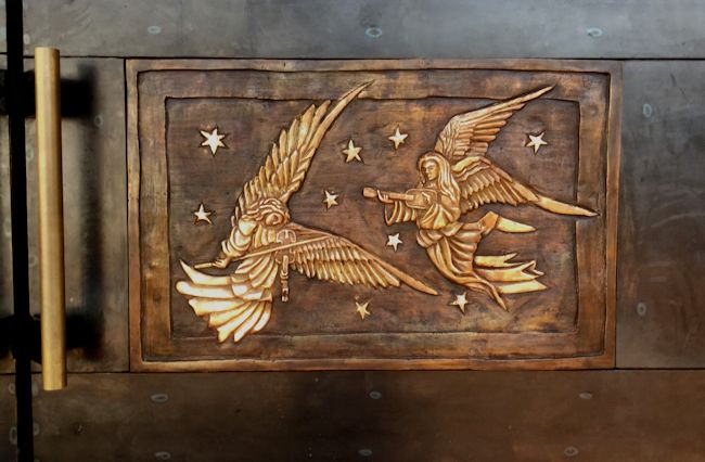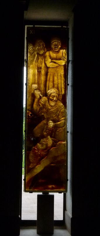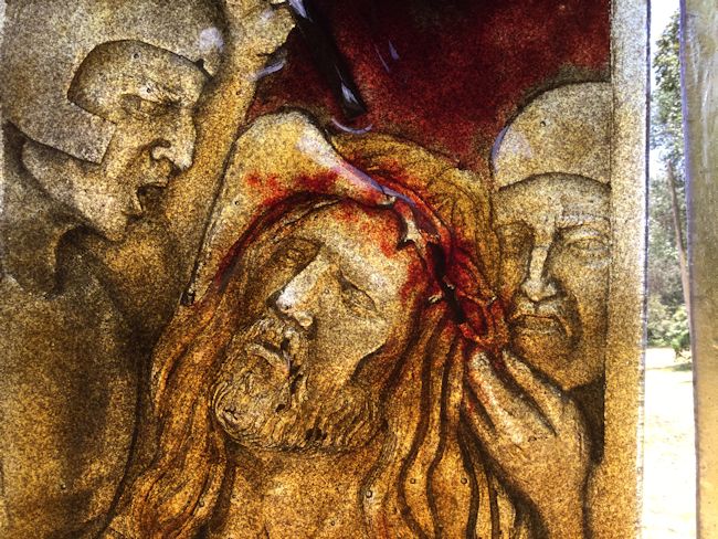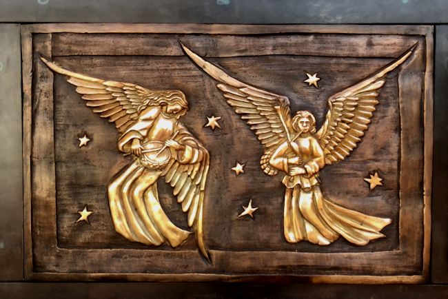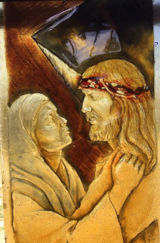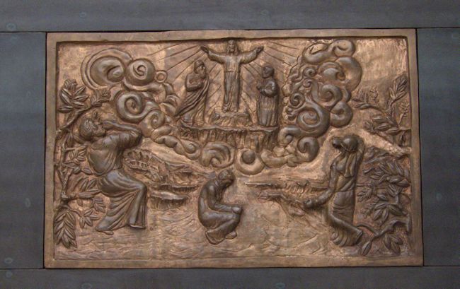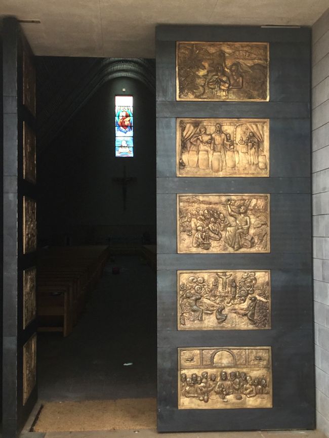 The cathedral has two sets of steel doors, there are relief sculpted bronze panels inserted into these doors. The method of creating the art work for these panels is similar to what is required to make the glass relief sculptures.
