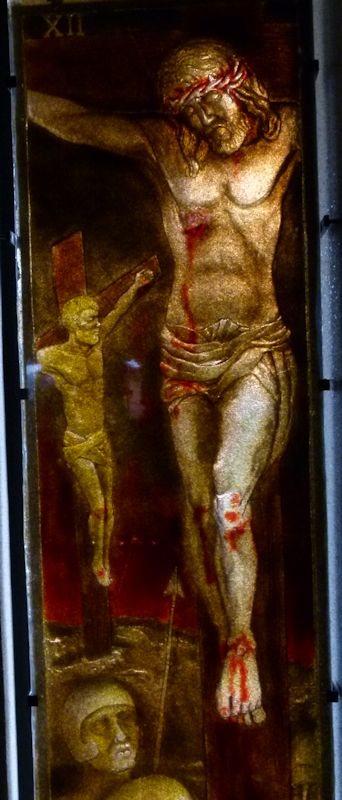full sized figure in the cathedral, and a small crucifix in the chapel.