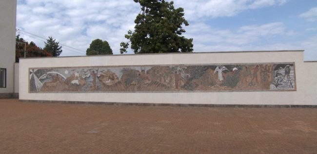 This is the mosaic that was made for the Kericho Cathedral. It is on the theme of the Garden of Eden. It is made of natural stone. it is 20Mt long and 2Mt high. This extraordinary work was undertaken by with Githaka Karuri and his team.