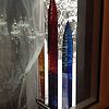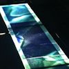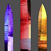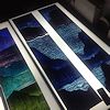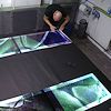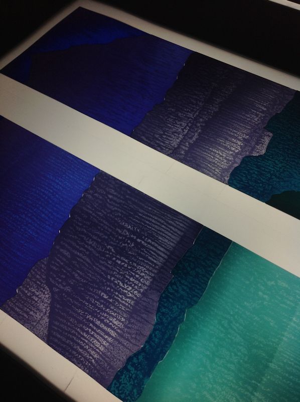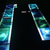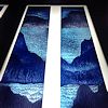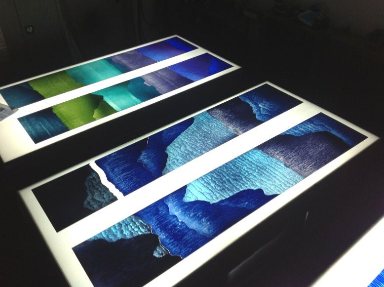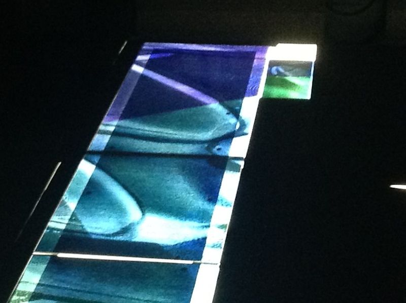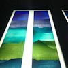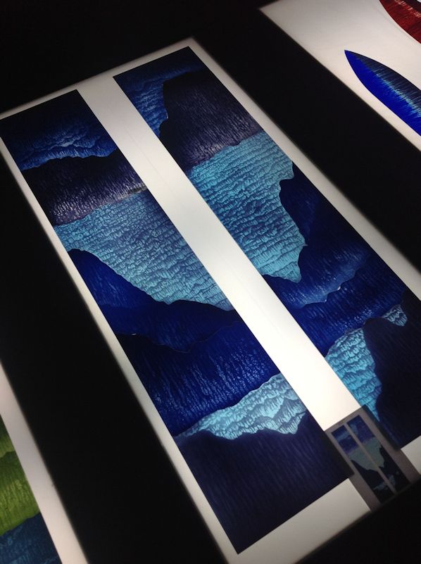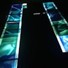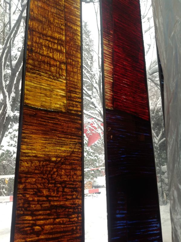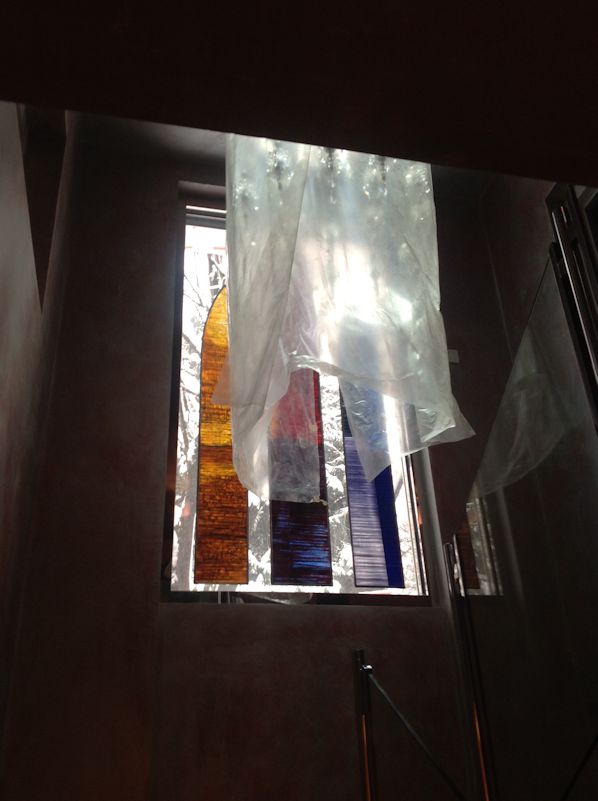In many ways, a very sad project created under a serious misunderstanding by the client that glass somehow magically glows from within. There were three sets of panels involved, only one has been sort of installed, the long horizontal piece and the other abstract landscapes are not to be seen and may have been destroyed.